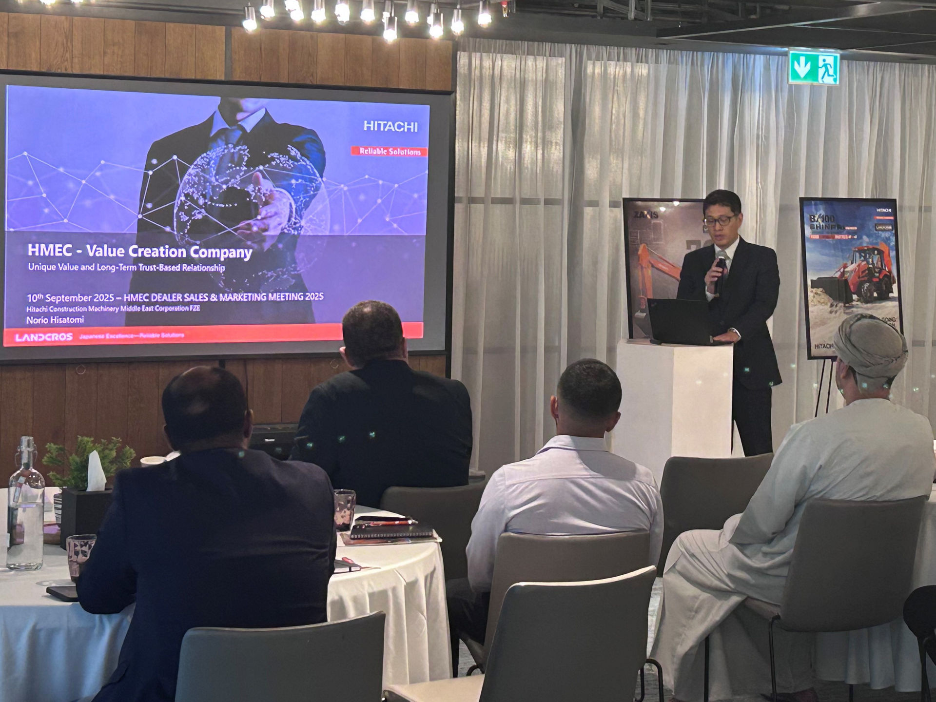 HMEC members delivered a comprehensive lineup of presentations that underscored the company’s commitment to value creation and product excellence. Key topics included: • Value Creation Company - Reinforcing the mission to deliver long-term value to customers through innovation and service. • 7G Excavators & Wheel Loaders - Showcasing next-generation performance, durability, and operator comfort. • BX100 Backhoe Loader - Highlighting versatility and reliability for urban and rural construction needs. • Mining Overview - Offering insights into large-scale equipment solutions for mining operations. • Mini Excavators & Crawler Cranes - Emphasizing compact power and precision for specialized tasks. • Camino Walk-Behind Roller - Introducing efficient compaction solutions for roadwork and landscaping. • Amphibious Equipment - Exploring solutions for challenging terrains and waterlogged environments. In addition to product updates, the meeting featured sessions designed to empower dealers with cutting-edge tools and strategies: • How to Sell - A practical guide to consultative selling and customer-centric approaches. • Value-Based Selling - Encouraging dealers to align product benefits with customer needs. • SNS and Website Optimization - Enhancing digital presence and engagement. • Landcros Connect & DBC Introduction - Leveraging digital platforms for smarter fleet management and diagnostics. • Extended Warranty Programs - Building trust and long-term customer relationships. • Okada Introduction - Expanding the portfolio with high-performance attachments. • Itochu Financing - Facilitating accessible and flexible financing solutions for customers.