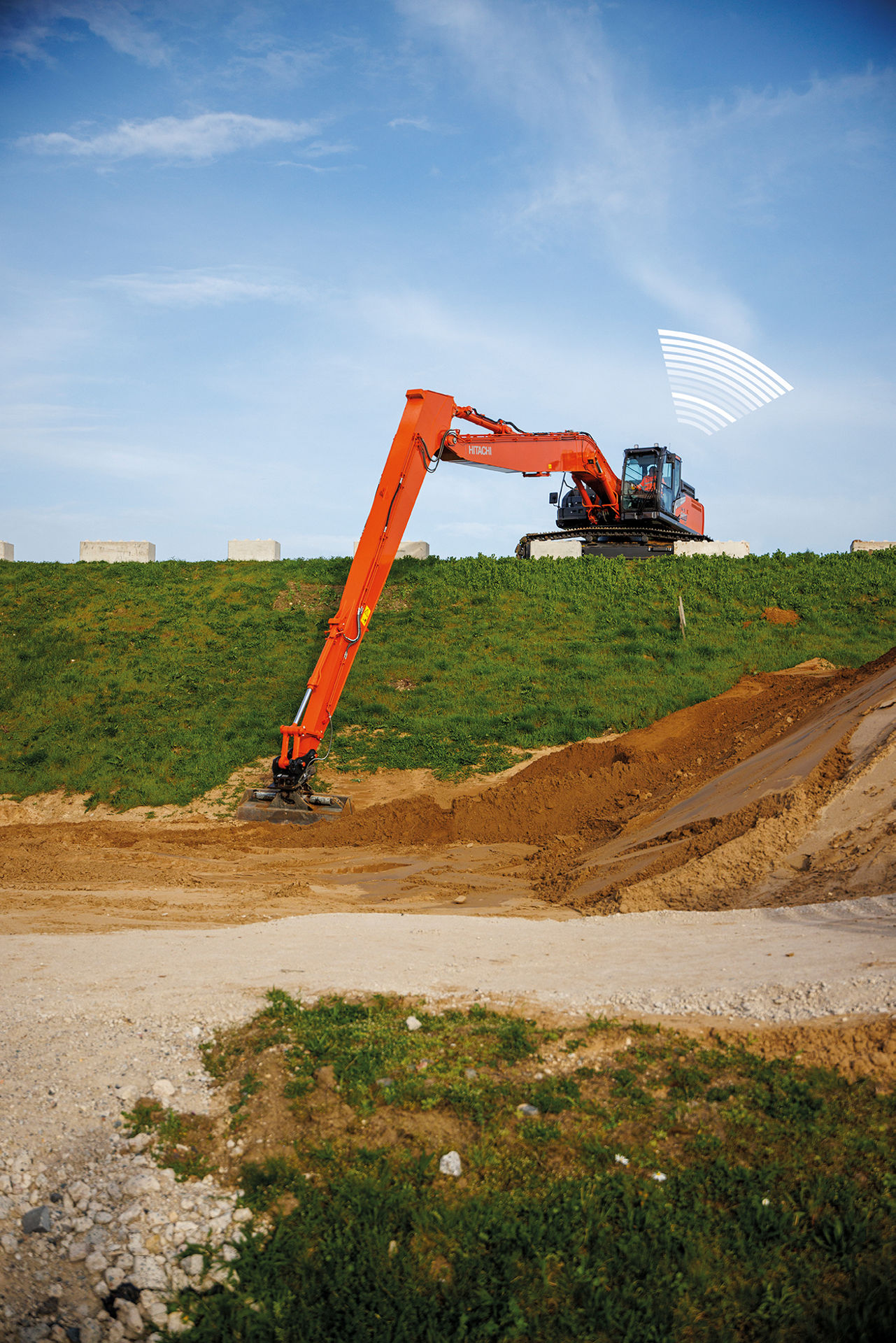 With an extended operating range, Hitachi SLF excavators have been designed for earthmoving on dredging, bank maintenance and slope finishing projects. They are easy to transport thanks to a low height profile.