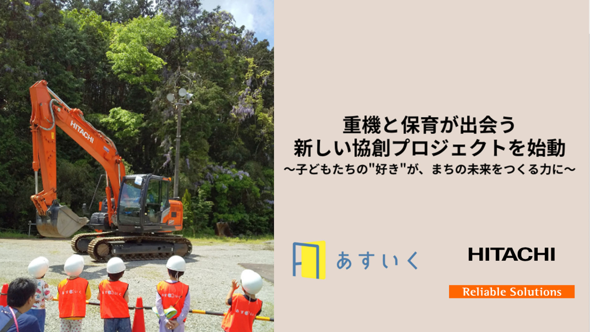 日立建機株式会社(本社:東京都台東区、執行役社長:先崎正文、以下「日立建機」)は、一時保育・習いごと保育や体験保育を手がける株式会社あすいく(本社:東京都港区、代表取締役社長:幸脇啓子)に協力をし、重機と保育が出会う新しい協創プロジェクトを始動します。