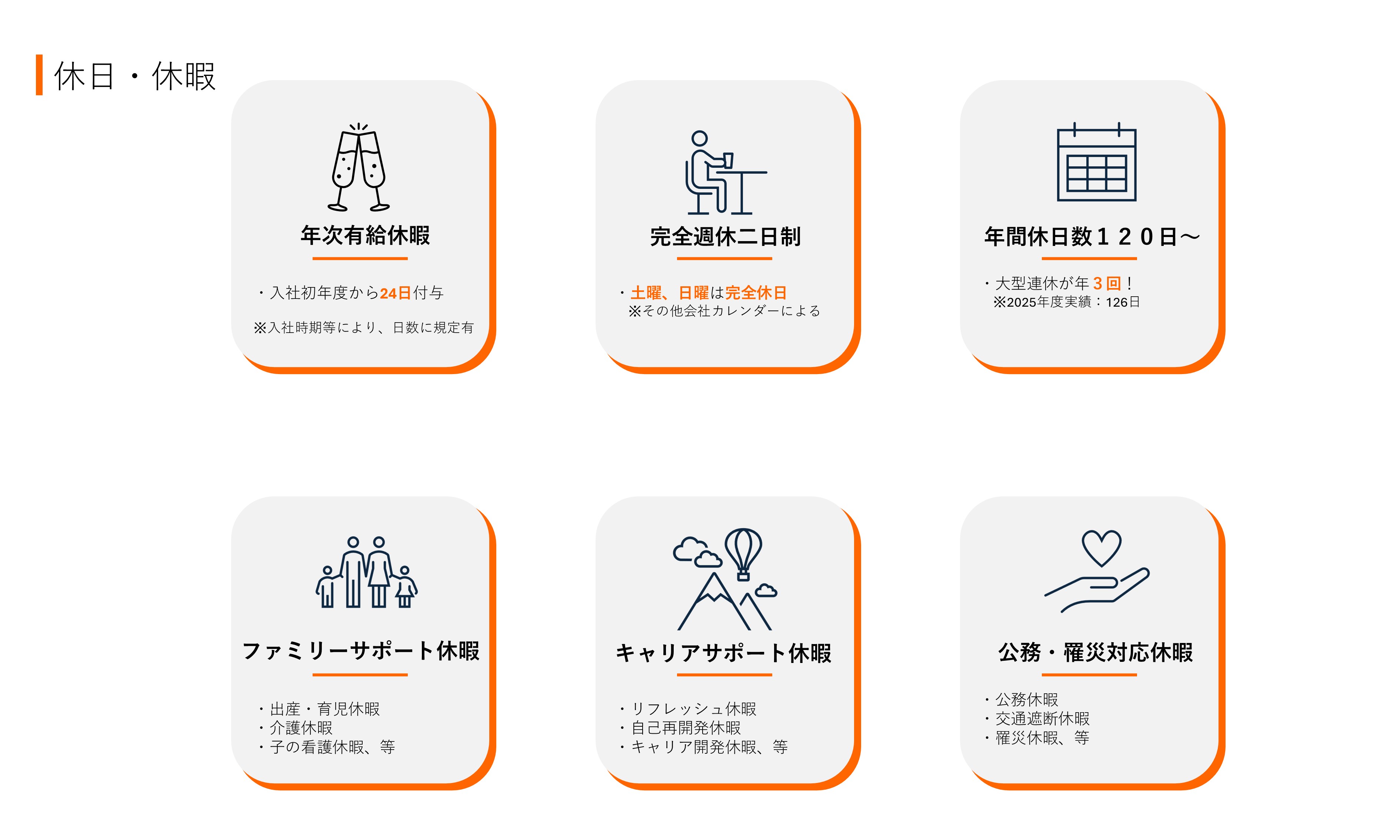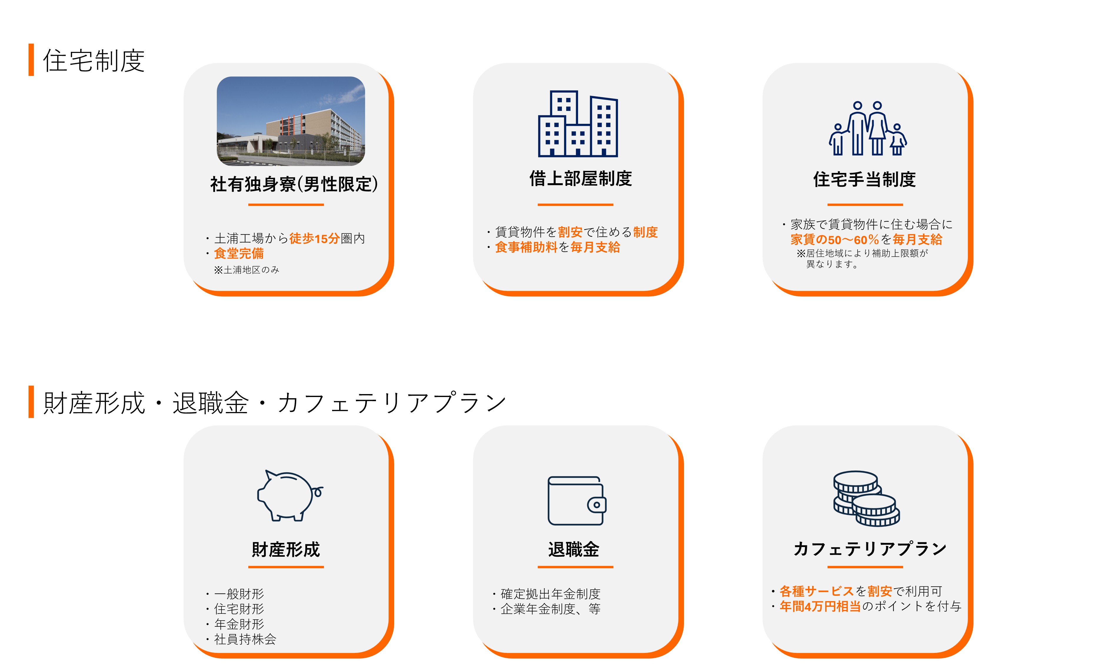 ここでは、日立建機の社員が安心して働くための様々な福利厚生をご紹介いたします。